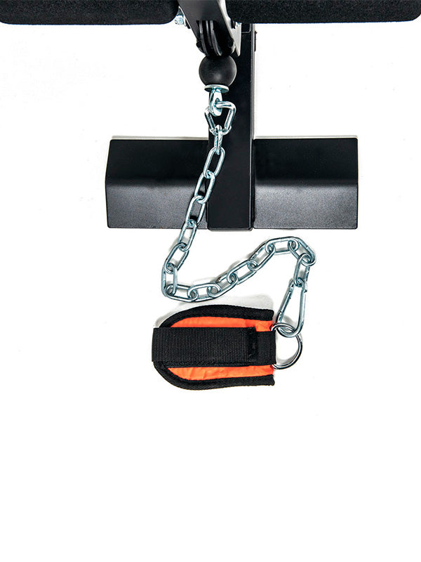 Estão incluídos a pilha de peso de 45 kg, barra de tríceps e alça de tração para tornozelo.